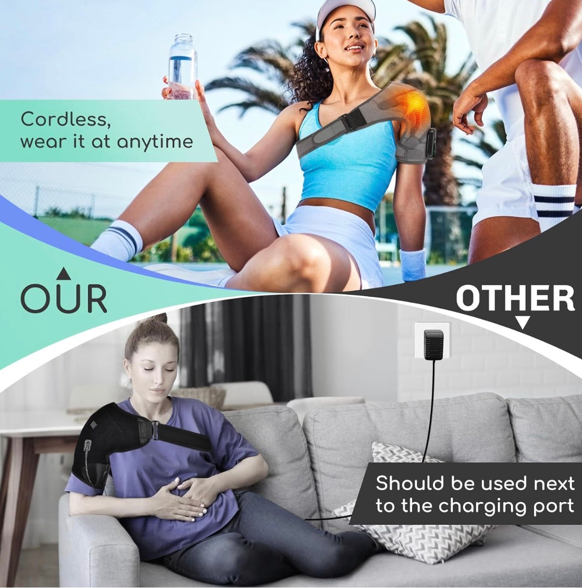 Experience next-level shoulder recovery designed for athletes who demand more. This premium brace combines targeted compression with advanced heat and massage technology to deliver deep, effective relief exactly where your body needs it most.